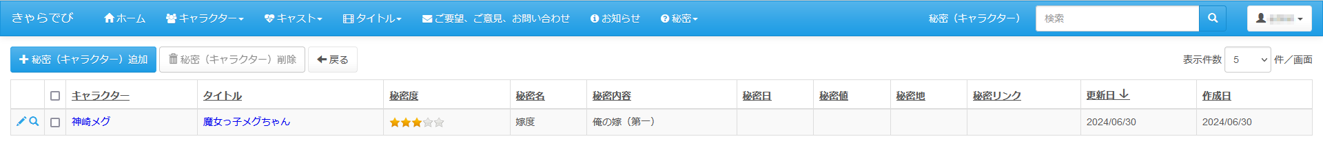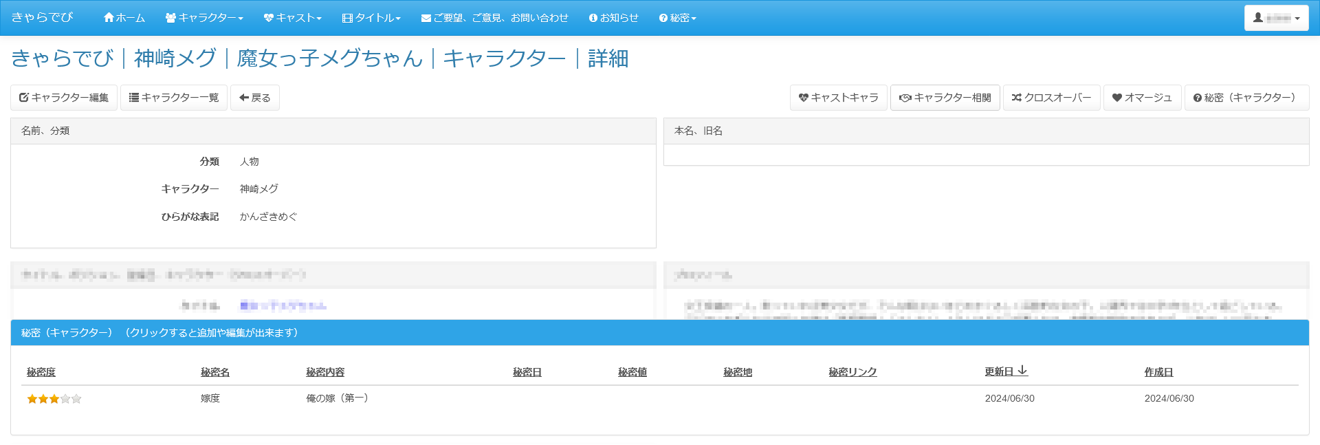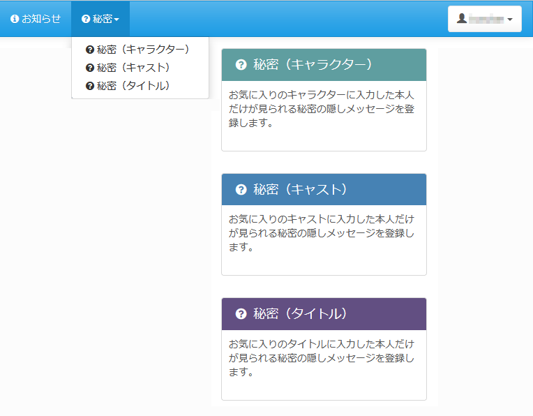 秘密機能とは、お気に入りのキャラクターやキャスト、タイトルに ログインした本人だけが見られる秘密のメッセージを登録できる機能です。